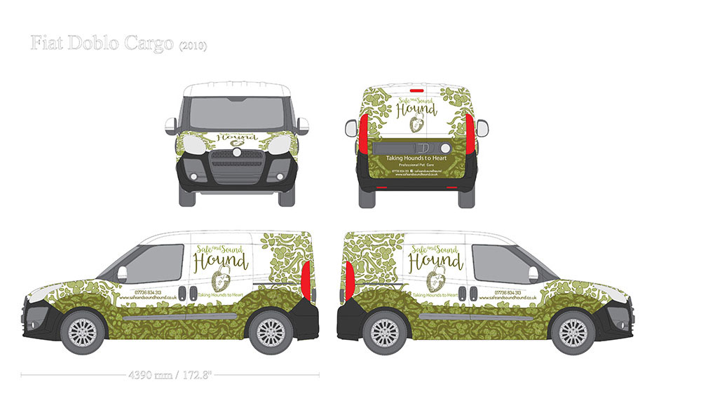 The design should reflect the rest of your branding, have your logo, corporate colour and visual identity, of course, but the best wrappings are usually those who take in consideration the shapes they are on, and either are organically developing around the car/van, or play with it creating optical illusions.